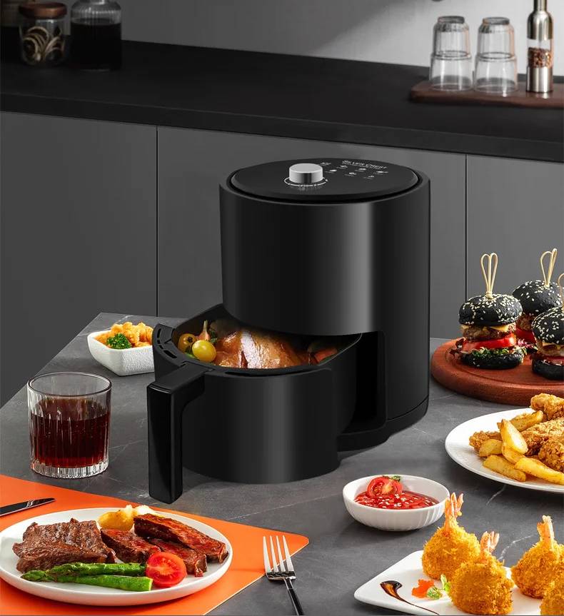 La freidora de aire de diseño moderno tiene incorporada tecnología de aire rápido, control de temperatura ajustable y un temporizador que lo ayudará a establecer el tiempo de cocción de los alimentos.