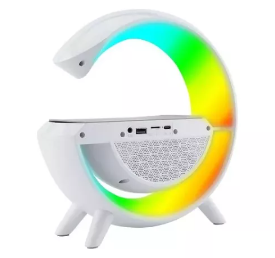 La Lámpara Parlante 3 en 1 es un dispositivo multifuncional que combina varias características en un solo un producto, no solo proporciona iluminación ambiental, sino que también tiene función de cargador inalámbrico, luces RGB, parlante y/o radio.