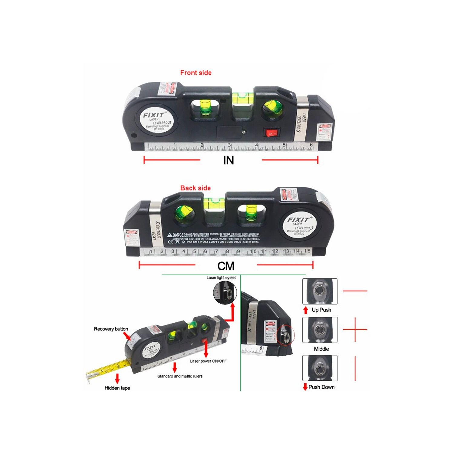 ✅ Posiciones del Láser: Cruz, Horizontal y Vertical.