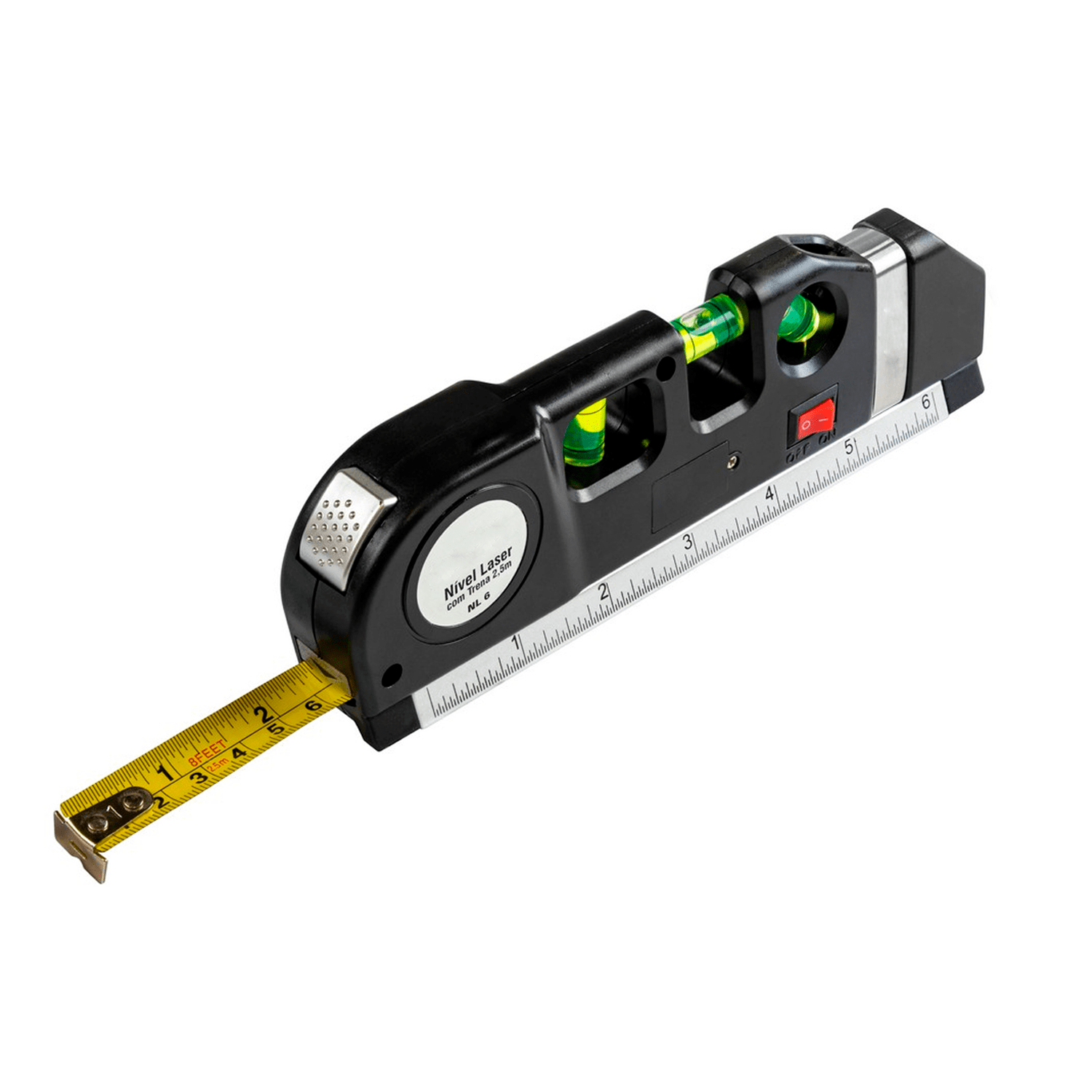 Esta herramienta multifuncional te permitirá llevar a cabo tus proyectos de todo tipo de construcción y medición de manera rápida y precisa, debido a que cuenta con una wincha de 2,5 m; 2 de reglas de 06 pulgadas y 15 centímetros; Nivelador y Laser Infrarojo.